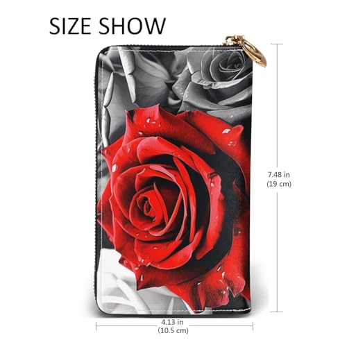 HOT ! Black White And Red Roses Women Wallets Leather Zip Around Clutch Purses Waterproof Credit Card Holder With Phone Holder Ladies Travel Coin Purse