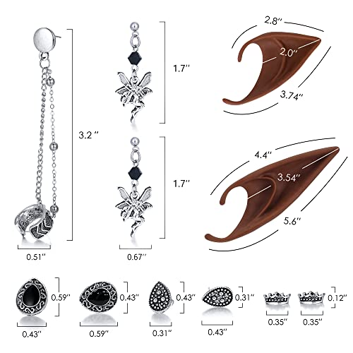 • Package Includes: Our product is a set of elf ears and delicate earrings accessories. You will receive two different lengths of elf ears, a pair of long elf ears and a pair of short elf ears and 2 sets of vintage earrings. The earrings set is exquisitely designed and includes pairs of well-designed earrings. They can not only be worn with elf ears but also be worn directly on your ears.