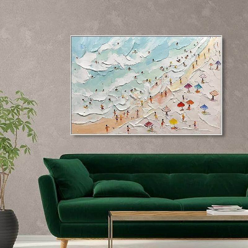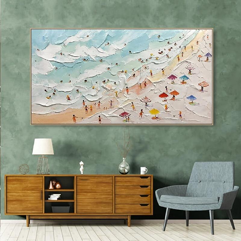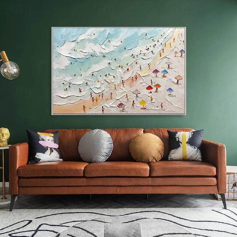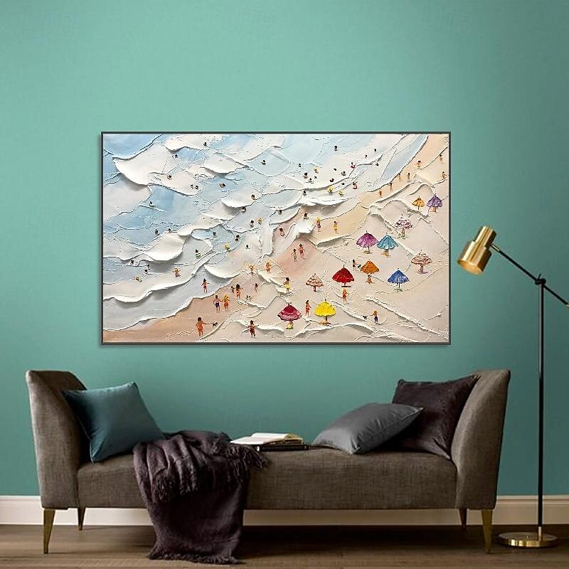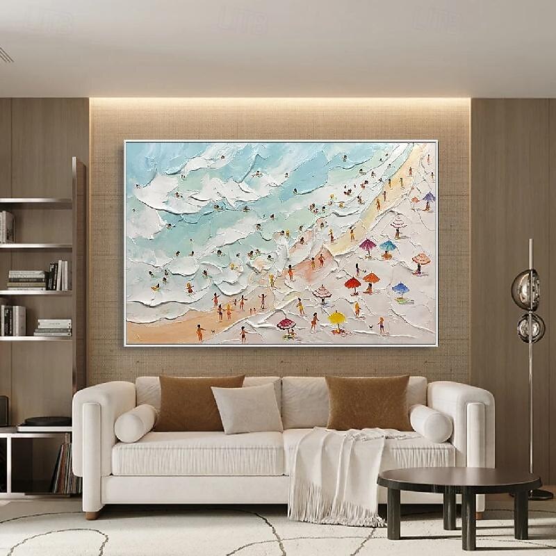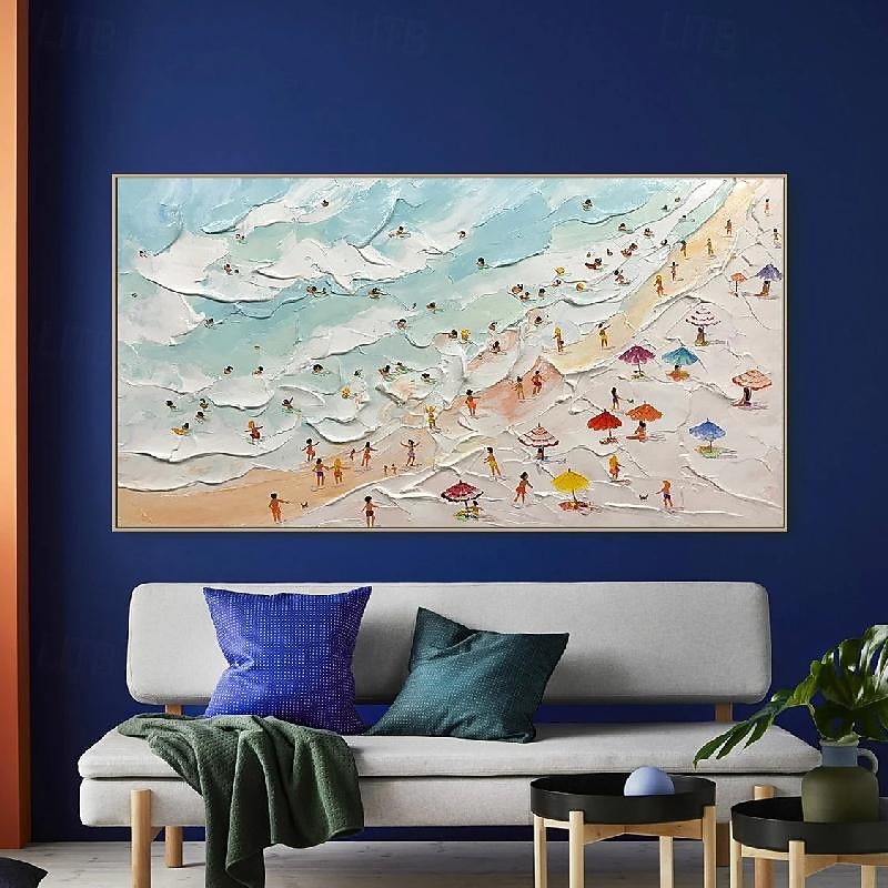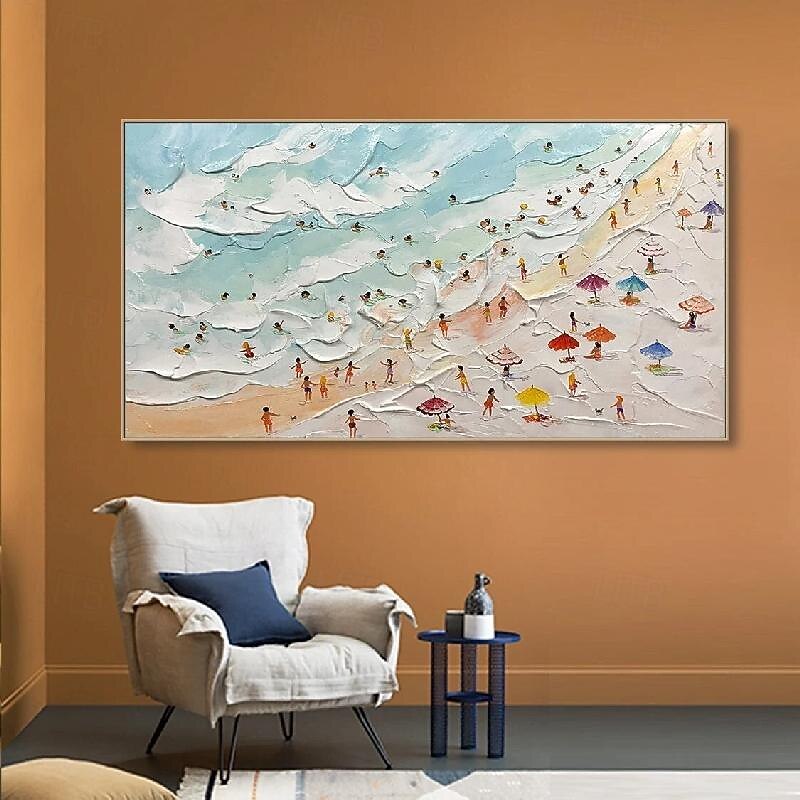 $154.99 - Hand painted Happy Coast Painting Swimming Painting Custom Painting Texture wave beach oil painting Wall Art Personalized Gift Summer Art Costal Art Crowds on the Shore Painting 2025. Shop for cheap Abstract Paintings online? Buy at lightinthebox.com on sale today!
