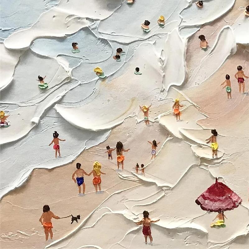 Hand painted Happy Coast Painting Swimming Painting Custom Painting Texture wave beach oil painting Wall Art Personalized Gift Summer Art Costal Art Crowds on the Shore Painting 3