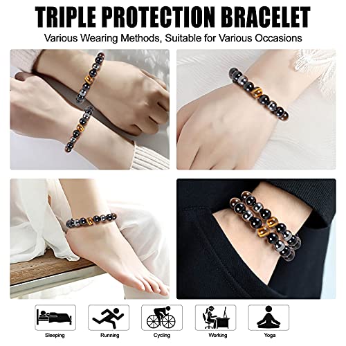 • 【Triple Protection Bracelets】: Triple protection bracelet is exquisite, and the triple protection bracelet is made of three high-gloss beads of hematite + obsidian + tiger eye. The beads is about 10mm, with the length is about 20cm(fit for 17-23cm wrist). The highly elastic stretch bracelet is easy to take and wear. Triple protection bracelets is suitable for most men and women.