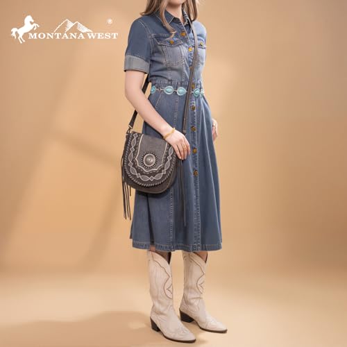 HOT ! Montana West Crossbody Bags for Women Floral Embossed Shoulder Bag Concho Collection with Tassels