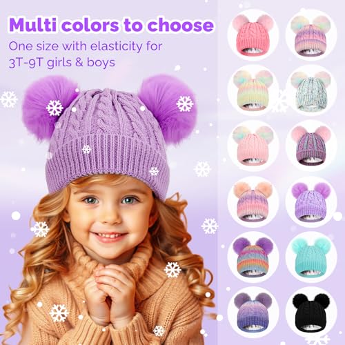 Girls Beanie with Double Pom Pom, Thick Warm Fleece Lined Knit Kids Winter Hat for 3-9 Years 7