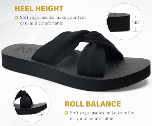 HOT ! KuaiLu Womens Dressy Sandals with Arch Support Yoga Mat Comfortable Cushion Walking Criss Cross Slides Summer Beach Slip On Indoor Outdoor Slippers
