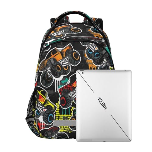 ALAZA Abstract Monster Truck Car Backpacks Travel Laptop Daypack School Book Bag for Men Women Teens Kids 6