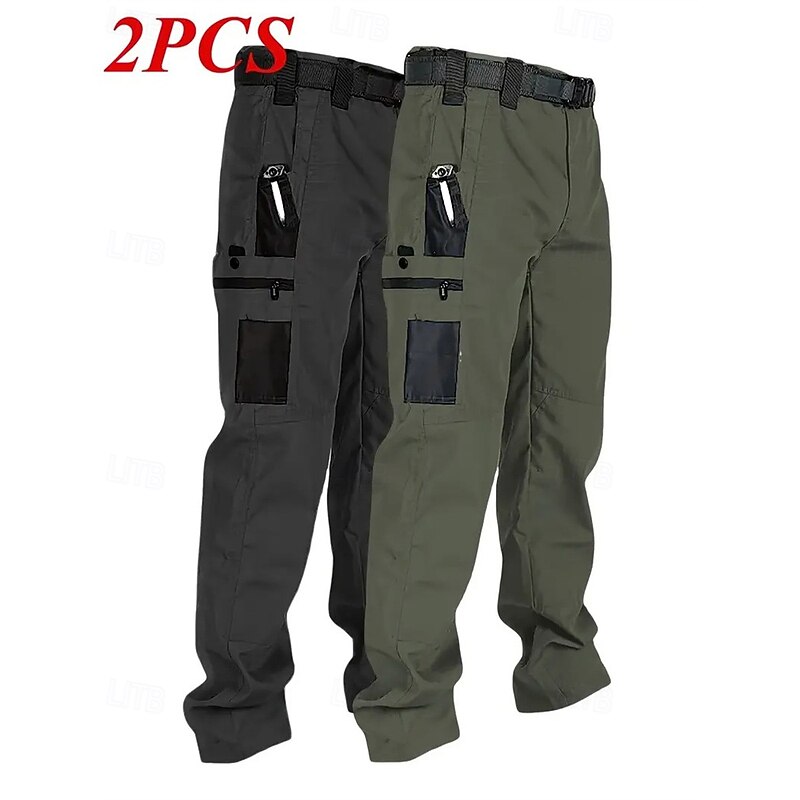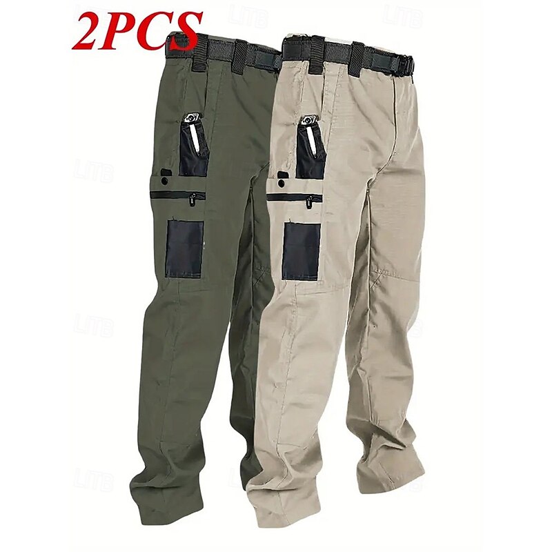 HOT ! Multi Packs 2pcs Men's Camouflage Black Cargo Pants Tactical Pants Multiple Pockets Plain Outdoor Vacation Polyester Spring