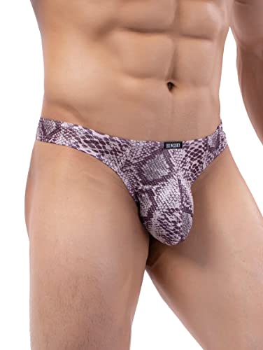 iKingsky Men's Snake Skin Pattern Thong Breathable T-back Underwear Low Rise Bulge Under Panties for Men 5
