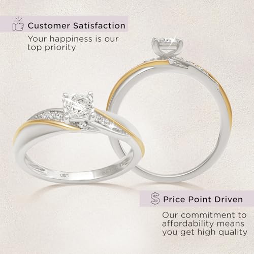 • Exquisite Design & Diamond Clarity: This Yellow Gold Plated Sterling Silver Diamond Bridal Ring for Women features a stunning 0.38 CTW round lab-grown diamond, meticulously set in a current yet timeless design. Its sparkling brilliance captures attention, making it the outstanding choice for a wedding, engagement, or any special occasion.