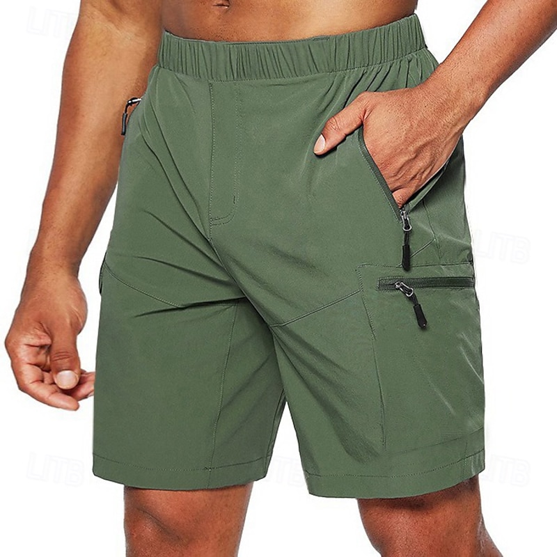More information about Men's Cargo Shorts Casual Shorts Elastic Waist Zipper Pocket Solid Color Ripstop Breathable Outdoor Daily Basic Casual Black Green