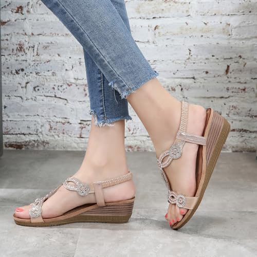 Women's Wedge Sandals Summer Comfortable Casual Bohemian Rhinestone Platform Outdoor Beach Shoes 6