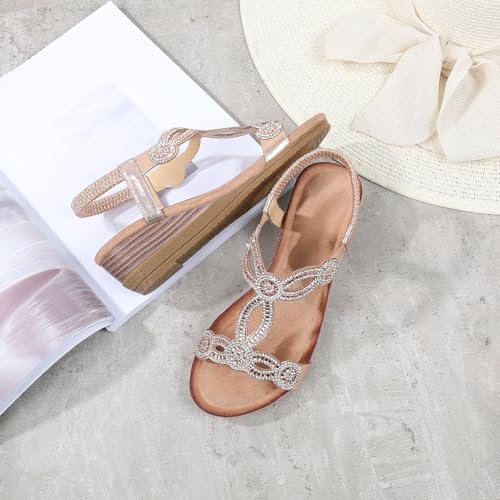 Women's Wedge Sandals Summer Comfortable Casual Bohemian Rhinestone Platform Outdoor Beach Shoes 7
