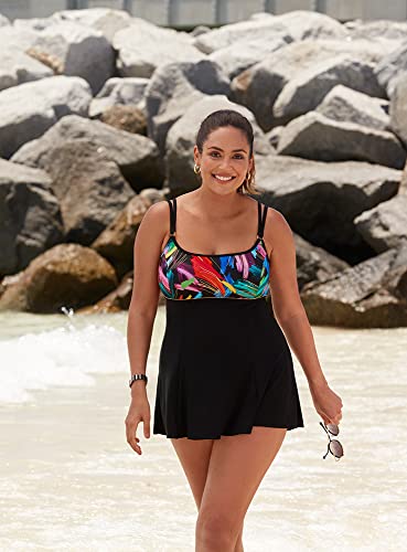 • Adjustable over the shoulder straps fit perfectly every time. Swim dress style hides extra pounds in your hips, thighs, and derriere.