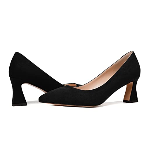 MODENCOCO Womens Pointed Toe Slip On Wedding Sexy Suede Casual Stiletto Mid Heel Pumps Dress Shoes 2.5 Inch 1