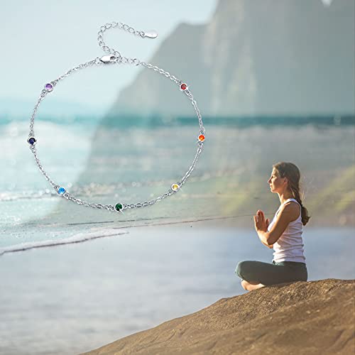 MEDWISE Chakra Bracelet Sterling Silver 7 Chakra Yoga Bracelet Wrist Link Bracelet Birthday Christmas Gifts for Women Wife Girlfriend 2