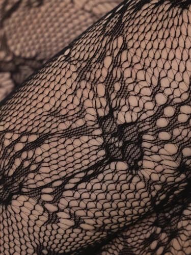 Womens High Waist Tights in timeless and Sexy Patterned Lace Stockings - supreme Fishnet Stockings Patterned Tights for Girls, Womens Goth Black to Elevate Your Look (Stylized flower black)