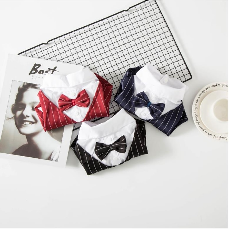 Chic design: the dog wedding bow tie suits adopt a chic stripe design with a button and bow decoration, making your pet a spot in the crowd; The fine cutting makes the dog suit costume fit your pet well; The suit style and small buttons make your pet look like an elegant prince