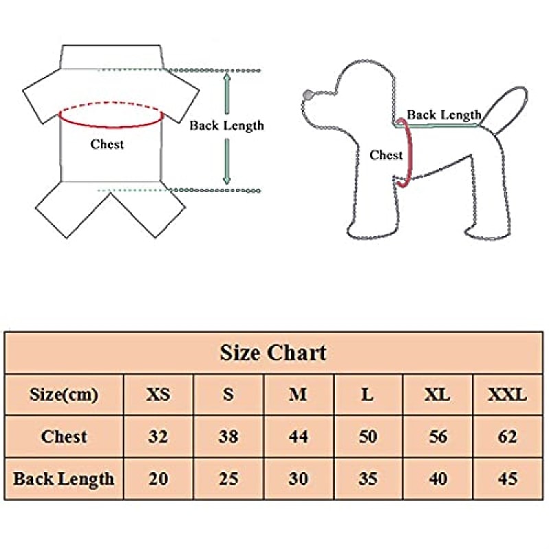Size: There are various sizes to choose from, please check the size carefully before buying; please note that the size will vary due to the design, fabric and other factors, please choose the size according to the size chart, not the usual pet clothes size. If your pet's size is close to the upper limit of the size chart, the larger size may be more suitable for your dog (this style is only suitable for small dogs)