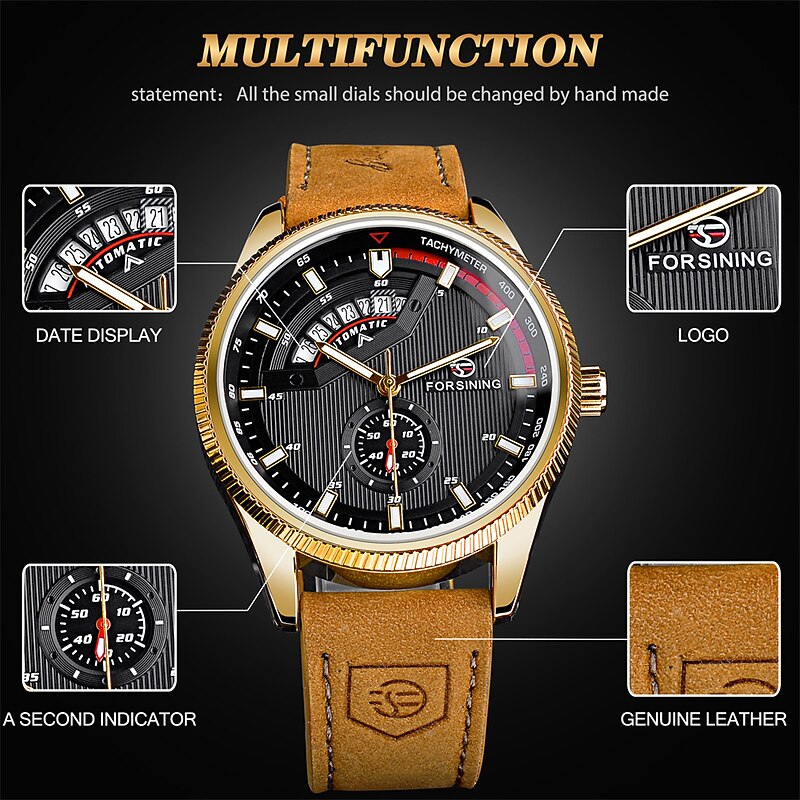 More information about FORSINING Men Mechanical Watch Outdoor Sports Fashion Wristwatch Automatic Self-winding Luminous Calendar Waterproof Leather Watch