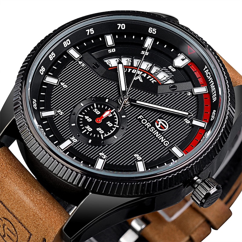 FORSINING Men Mechanical Watch Outdoor Sports Fashion Wristwatch Automatic Self-winding Luminous Calendar Waterproof Leather Watch 1