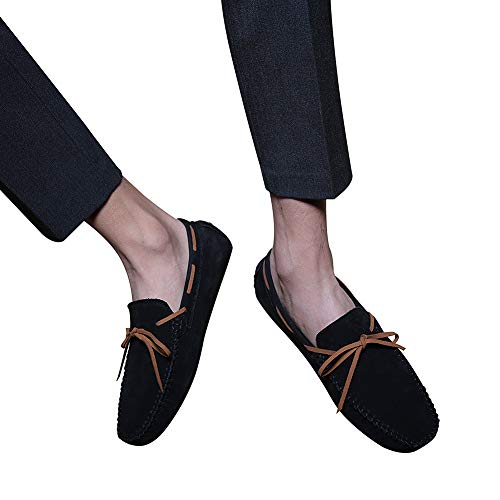 ANUFER Mens Suede Leather Handmade Moccasins Comfortable Carpet Slippers Non-Slip Boat Shoes Casual Loafer Flats 5
