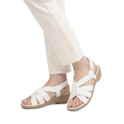 VJH confort Women’s Wedge Sandals, Comfortable Platform Cushioned Insole Strappy Round Toe Casual Wedge Sandals 4