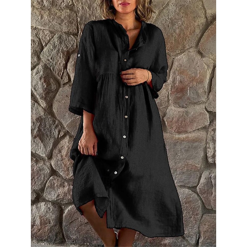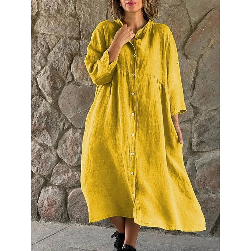 More information about Women's Black White Yellow Summer Spring Midi Dress Linen-Inspired Dresses Shirt Dress Casual Dress Basic Modern Daily Weekend Loose Fit Plain Shirt Collar