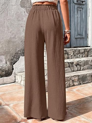 More information about Women's High Waisted Wide Leg Beach Pants Flowy Adjustable Tie Knot Palazzo Pants Lightweight Business Trousers