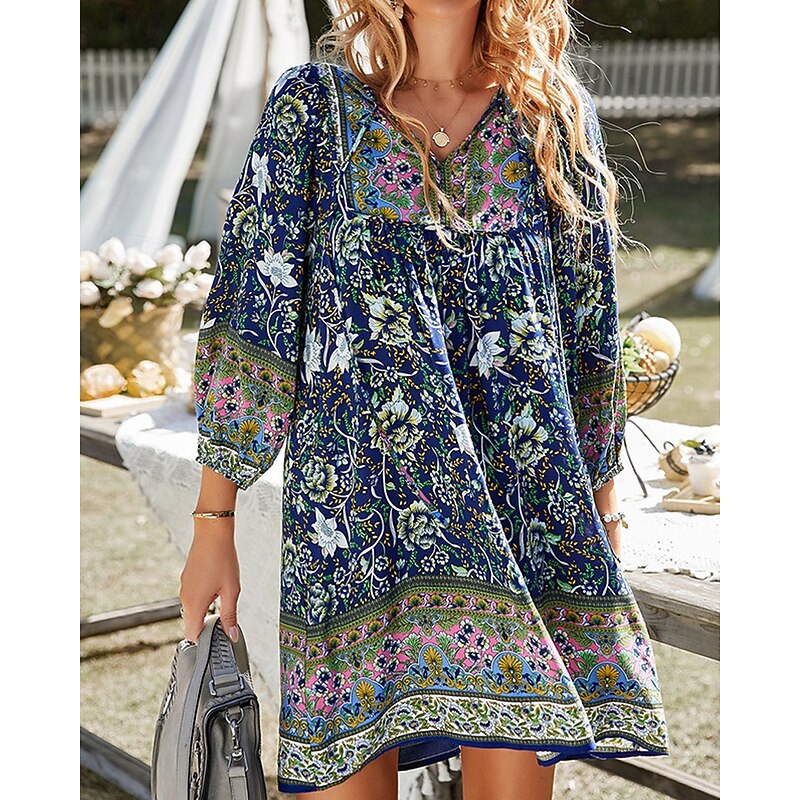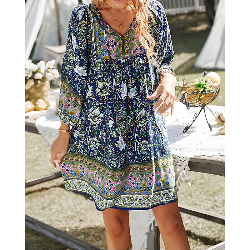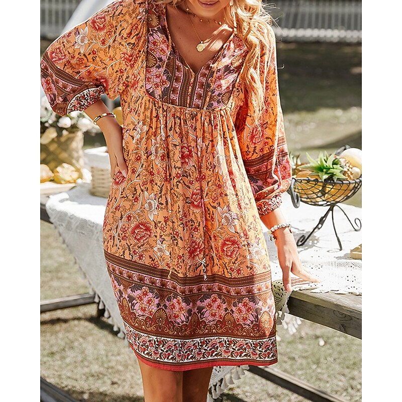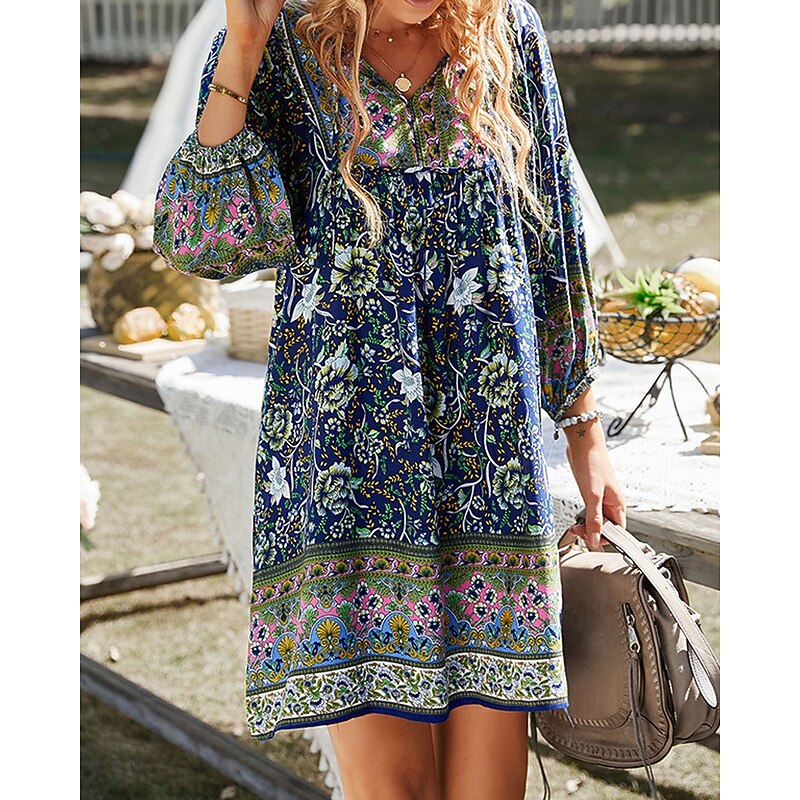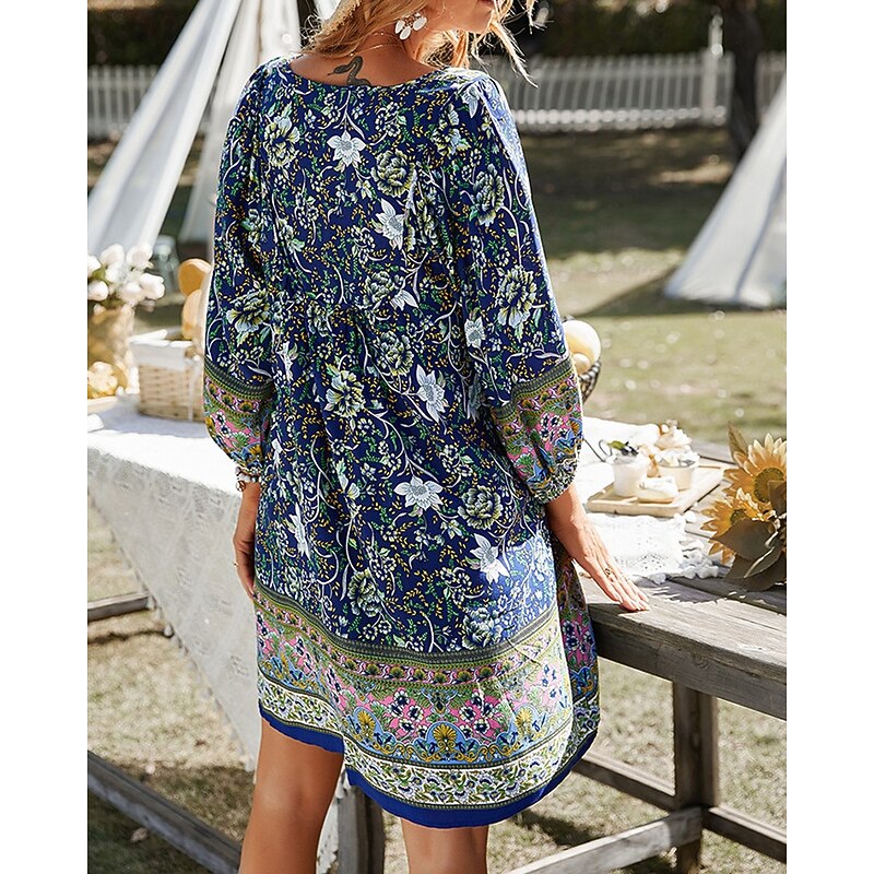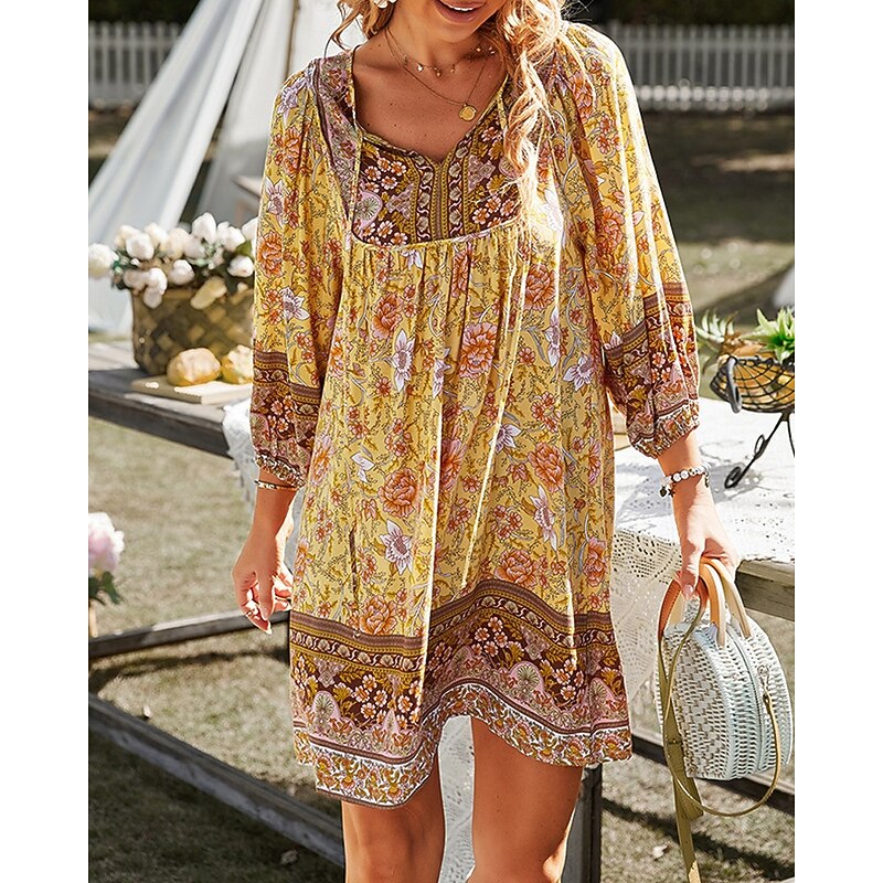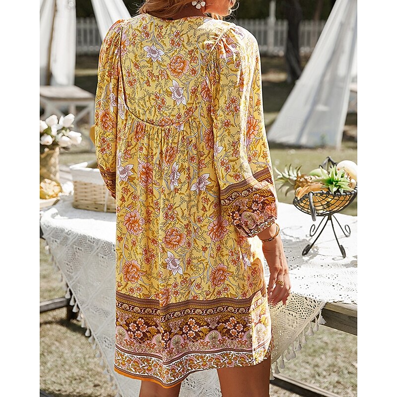More information about Women's Mini Dress Floral Dress Boho Dress Print Dress Classic Modern Outdoor Vacation Holiday Regular Fit Flower Long Sleeve V Neck Yellow Pink Navy Blue Blue Summer
