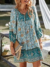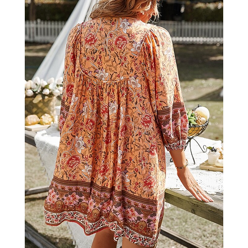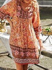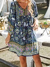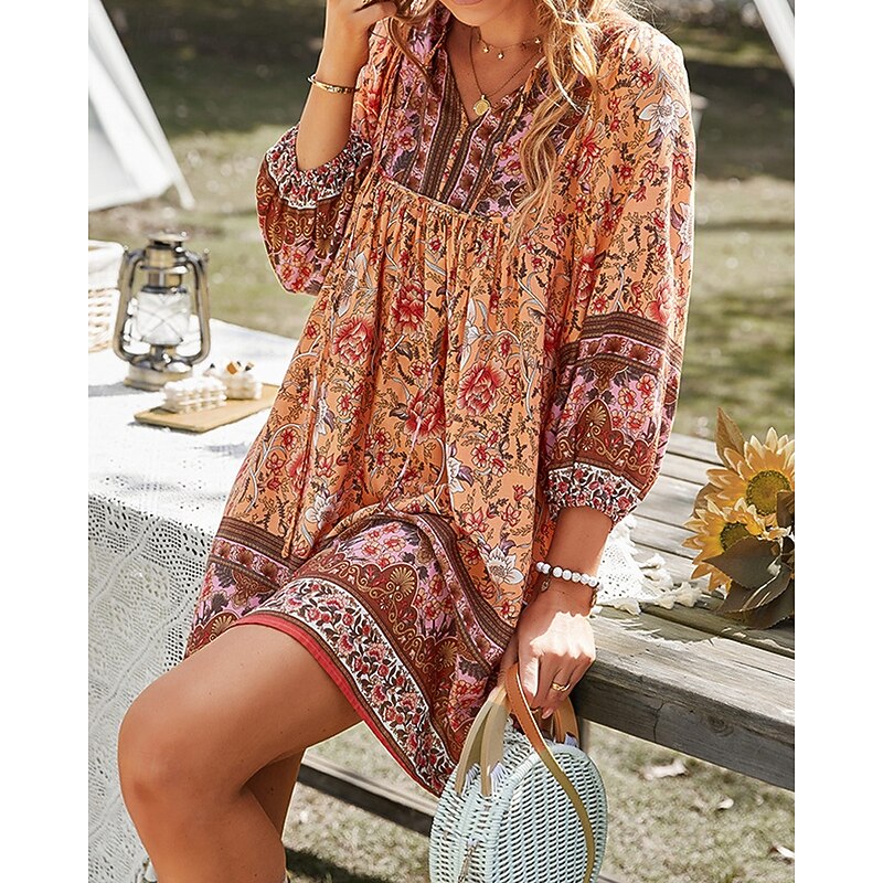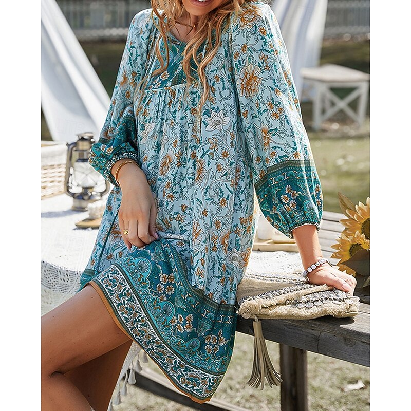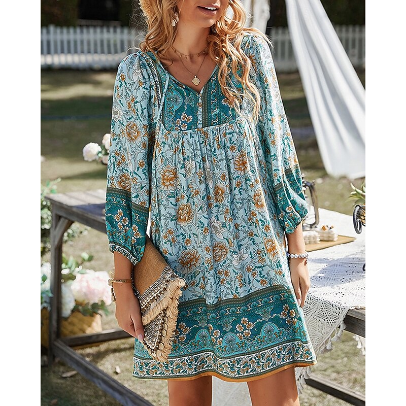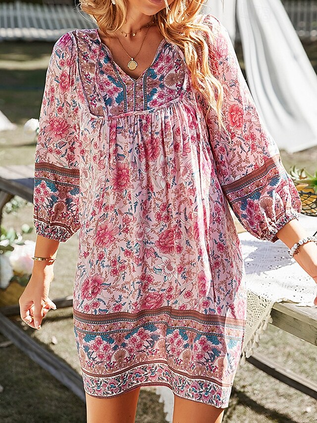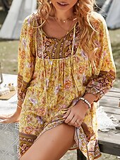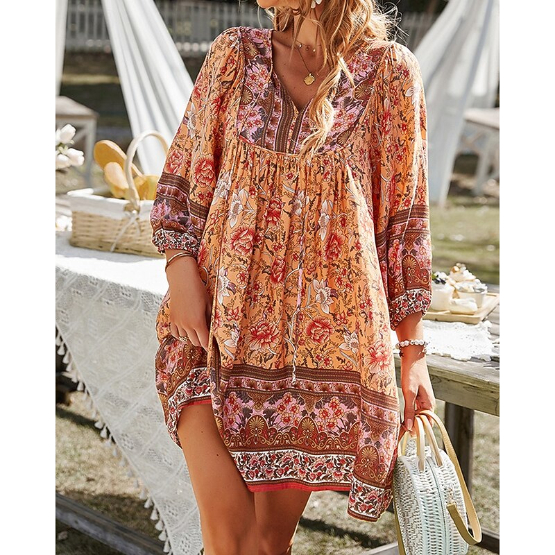 More information about Women's Mini Dress Floral Dress Boho Dress Print Dress Classic Modern Outdoor Vacation Holiday Regular Fit Flower Long Sleeve V Neck Yellow Pink Navy Blue Blue Summer
