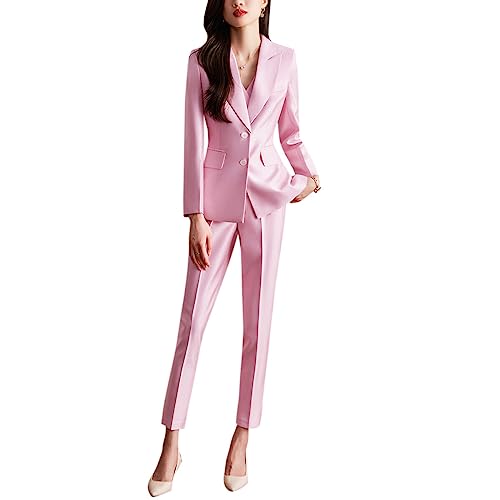 YYNUDA Women's Business 2 Piece Office Work Suit Set Single Breasted Solid Blazer Jacket and Pants