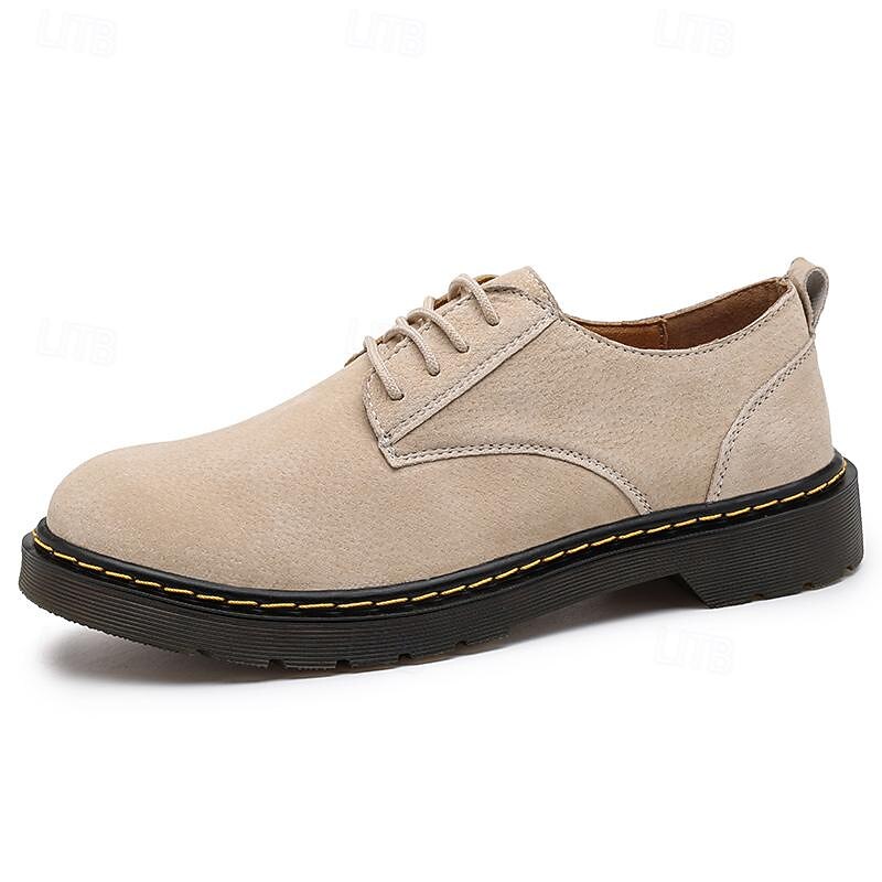 Highlights [Fabric] Crafted from high-quality split leather, these men's classic suede Oxfords offer a luxurious and soft feel. The premium materials ensure both durability and comfort, making them a reliable choice for everyday wear. [Fit] Featuring a timeless round toe design and a secure lace-up closure, these Oxfords provide an adjustable fit for enhanced comfort and ease of wear throughout the day. [Design Highlights] The rich tan color and sleek stitching details on the durable rubber sole add sophistication and style. The combination of traditional elements with a hint of modern, urban flair provides a versatile appeal. [Occasions] These versatile shoes are perfect for a variety of occasions, from casual outings to semi-formal events. Whether you're heading to the office or a weekend gathering, these Oxfords add a touch of elegance with a rugged charm. [Size Notice] Available in a range of sizes from US7 / EU39 / UK6 to US12 / EU45 / UK11, ensuring a wide fit range to accommodate different preferences and needs.
