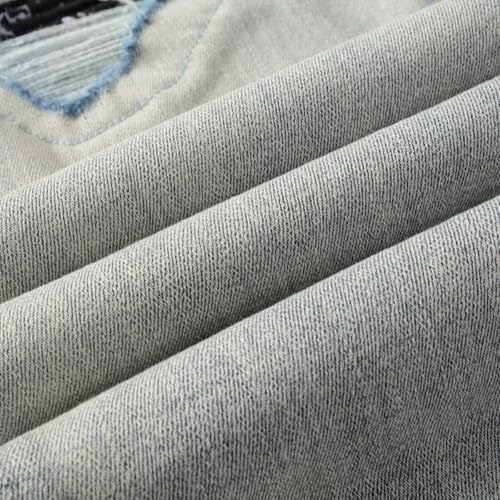 More information about Jeans Pants Trousers Denim Men Perforated Elastic Slim Fit Worn Hole with Zircon Sequins Street Trendy Blue Sanding Fading Fringed Casual Small Leg(Light Blue,29)