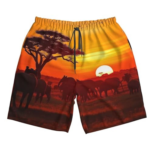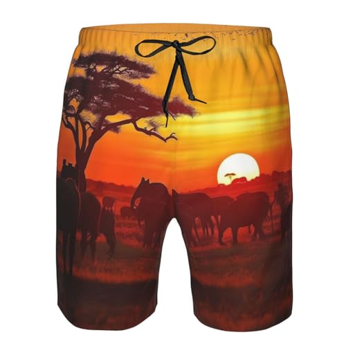 • African Animal Sunset Printed Swim Trunks for Men: These surf shorts can be worn in and out of the water during summer vacation. Our Men's Sweat Shorts Swimsuits using dye-sublimation technology that allows graphics lifelike, vibrant colors and comfy material will bring you a cool summer