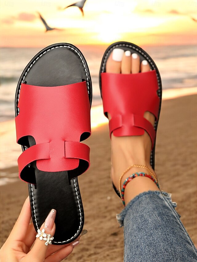 Women's Red Slip-On Sandals – Stylish Open-Toe Flat Sandals for Summer Beachwear, Casual Walks, and Vacation Outfits 17