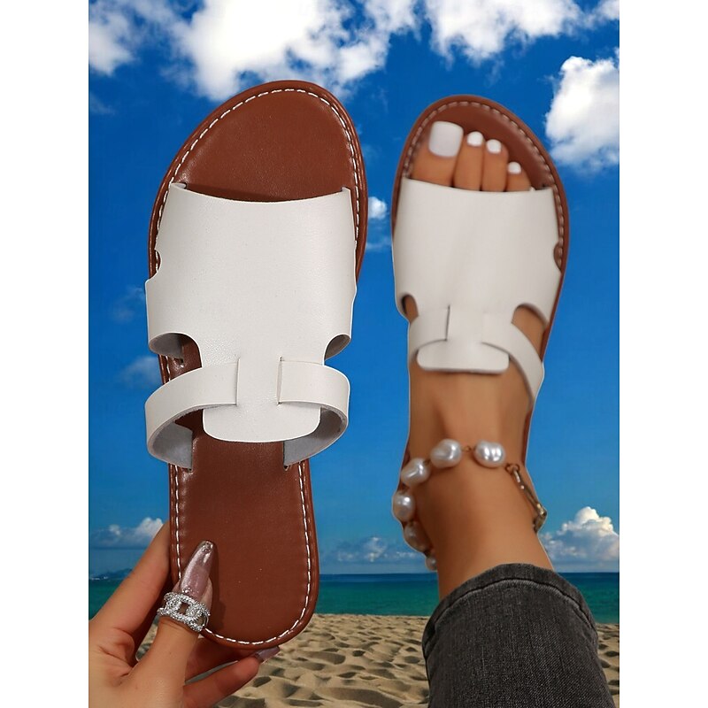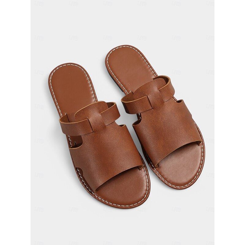 Women's Red Slip-On Sandals – Stylish Open-Toe Flat Sandals for Summer Beachwear, Casual Walks, and Vacation Outfits 1