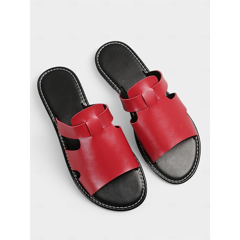 Women's Red Slip-On Sandals – Stylish Open-Toe Flat Sandals for Summer Beachwear, Casual Walks, and Vacation Outfits 20