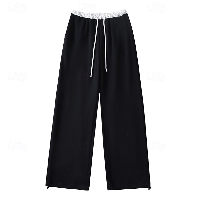 More information about Women's Sweatpants Pants Trousers Straight Fashion Streetwear Full Length High Waist Plain Drawstring Elastic Waist Breathability Comfortable Micro-elastic Street Daily Wear Going out Black Light