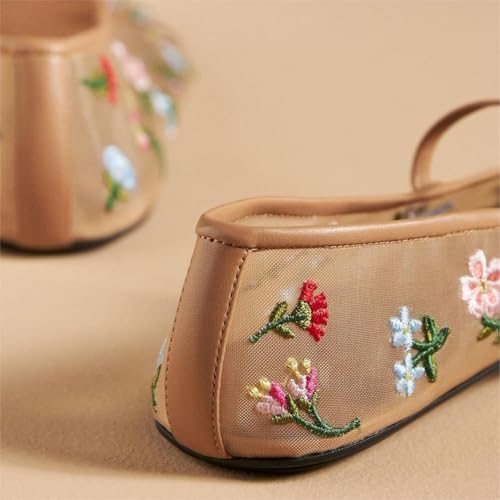 Women's Embroidered Mesh Ballerinas Shoes Round Toe White Pearl Ballet Flats with Buckle Strap Summer Fashion Flat 5