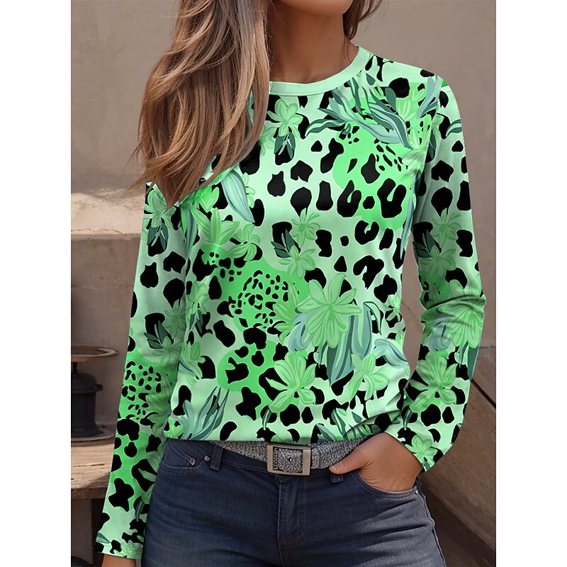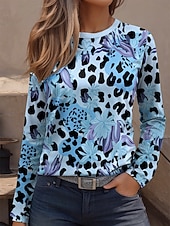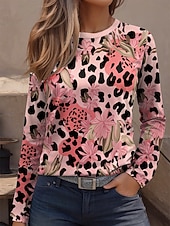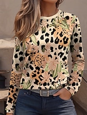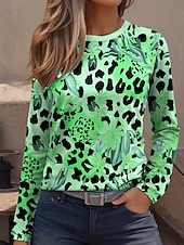 More information about Women's T Shirt Graphic Leopard Geometric Vintage Fashion Stylish Long Sleeve Crew Neck Regular Tops Daily Weekend Print Pink Blue Purple Green Khaki Spring Fall