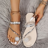 More information about Women's Strappy Sandals Slippers Boho Beach Plus Size Outdoor Slippers Beach Solid Color Rhinestone Flat Heel Vacation Casual Silver Rose Gold Chocolate