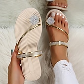 HOT ! Women's Strappy Sandals Slippers Boho Beach Plus Size Outdoor Slippers Beach Solid Color Rhinestone Flat Heel Vacation Casual Silver Rose Gold Chocolate
