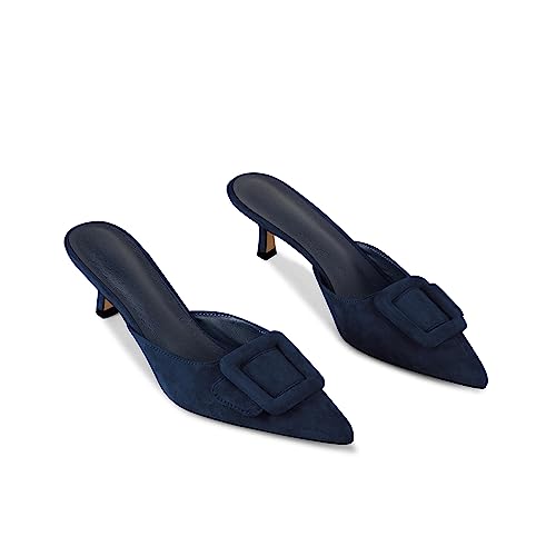 Kitten Heel Mules Sandals for Women Pointed Toe Square Buckle Backless Slip on Suede Stiletto Dress Heeled Sandals Wedding Party Shoes 1