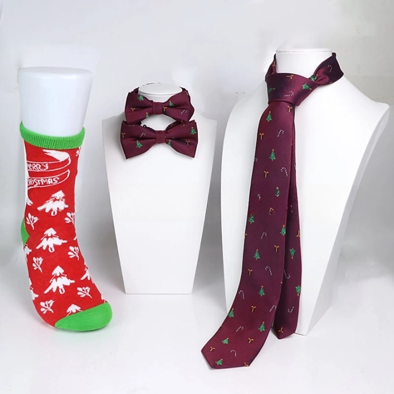 Christmas Outfits Set 5Pcs Santa Claus Christmas Socks Bow Tie Men's Classic Style Christmas Eve Paty 17