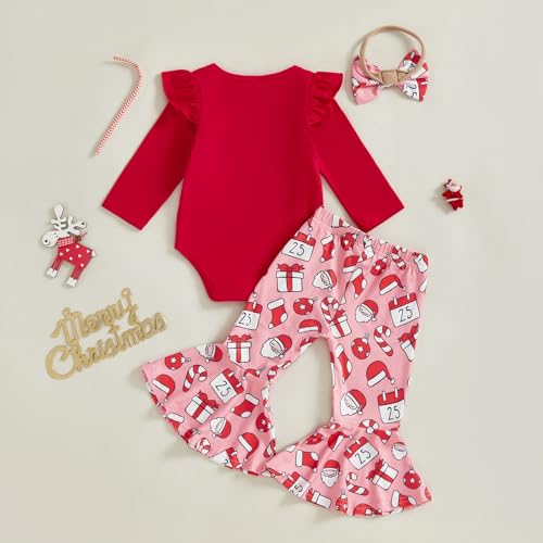 Christmas Baby Girl Outfit My First Christmas Newborn Romper Shirt Onesie Bell Bottoms Pants Winter Baby Clothes 3