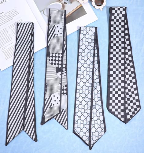4PCS Purse Scarf for Handbags, Multifunctional Boho Checkered Purse Scarves for Handbags for Women, Suitable for Skinny Hair and Neck Accessories 4