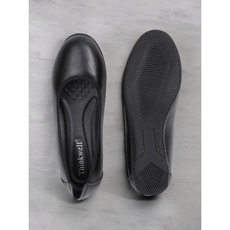 Women's Black Leather Slip-on Flats with Cushioned Insole - Comfortable and Stylish for Everyday Wear 14