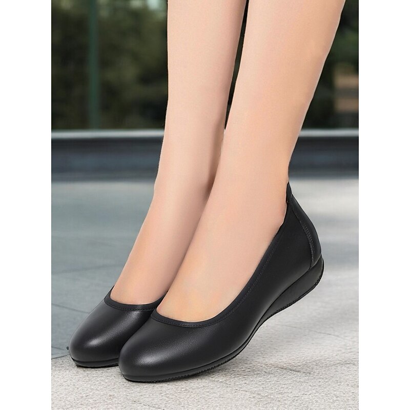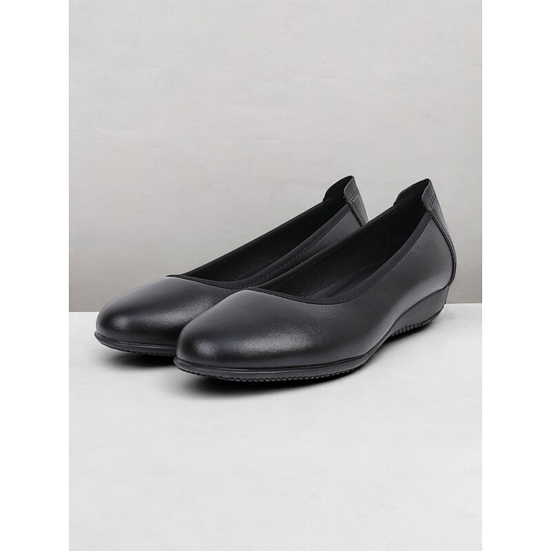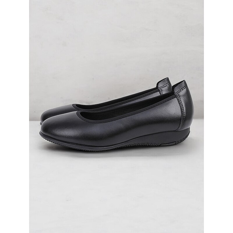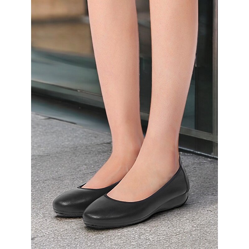 Highlights [Fabric]: Crafted from smooth, high-quality leather, these women's flats offer a sleek and glossy appearance. The fine leather ensures durability and easy maintenance while providing a touch of elegance to any outfit. [Style]: Featuring a classic round toe, these shoes are designed in a minimalistic and versatile style, making them suitable for various occasions. The inclusion of a low flat heel offers a comfortable fit without compromising style, perfect for both casual and professional settings. [Design Details]: These slip-on flats come with a cushioned insole, providing extra comfort and support for all-day wear. The subtle grip on the rubber outsole ensures safety and stability, further enhancing their practical appeal. [Occasions]: Ideal for work, business meetings, or a day in the office, these flats are perfect for those who prioritize comfort while maintaining a sophisticated look. [Size Range]: Available in a wide size range, including US5.5 to US10.5, these shoes cater to various foot sizes, ensuring a suitable and comfortable fit for everyone.