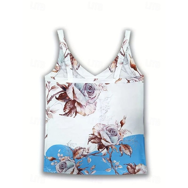 More information about Women's Shirt Blouse Floral Graphic Vintage Tropical Stylish Sleeveless Strap V Neck Regular Tops Daily Print Black And White Blue Sky Blue Summer Spring