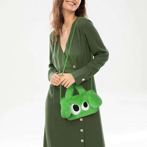 HOT ! Crossbody Bag for Women, Cute Big Eyes Plush Bag with Adjustable Leather Strap, Fluffy Novelty Handbag for Girls
