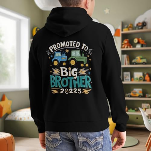 Kids Funny Vintage Tractors Promoted To Big Brother 2025 Boys Girls Lightweight Kangaroo Pocket Hoodies 6